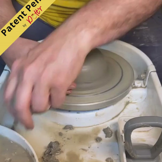 Overfladen har en diskret, rippet struktur, som efterligner håndens trykpunkter og hjælper leret til at finde centrum naturligt.