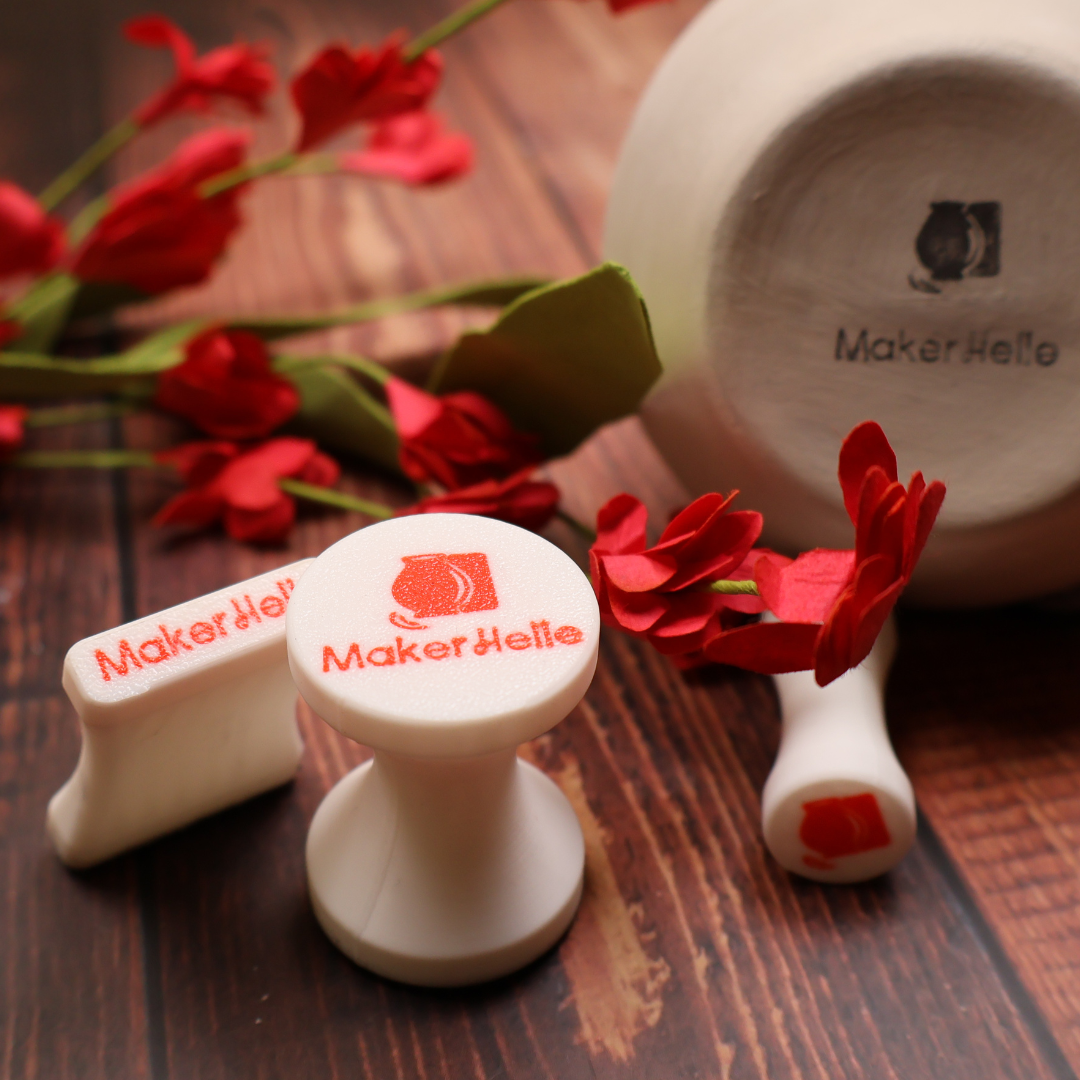 Sæt dit præg med et gummistempel til underglasur Med et speciallavet gummistempel kan du overføre dit eget logo, en signatur eller et mønster i underglasur