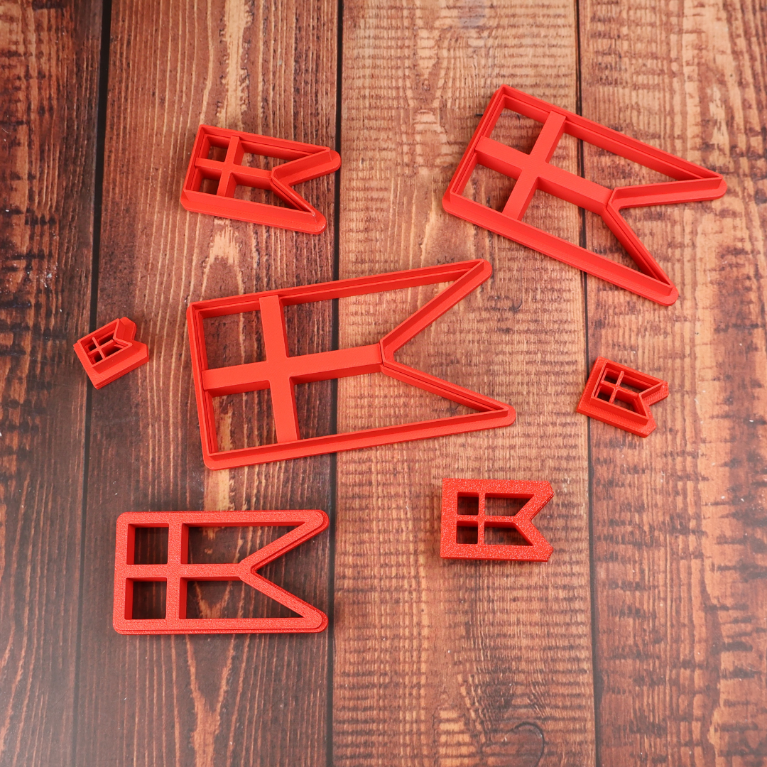 Sættet består af to dele: en udstikker og en præger. Du kan bruge dem sammen – eller hver for sig, alt efter hvilket udtryk du ønsker i dit arbejde med ler. Udstikkeren former det klassiske danske splitflag med trekantet afslutning, og prægeren trykker det ikoniske kors midt i flaget med fine, præcise linjer.